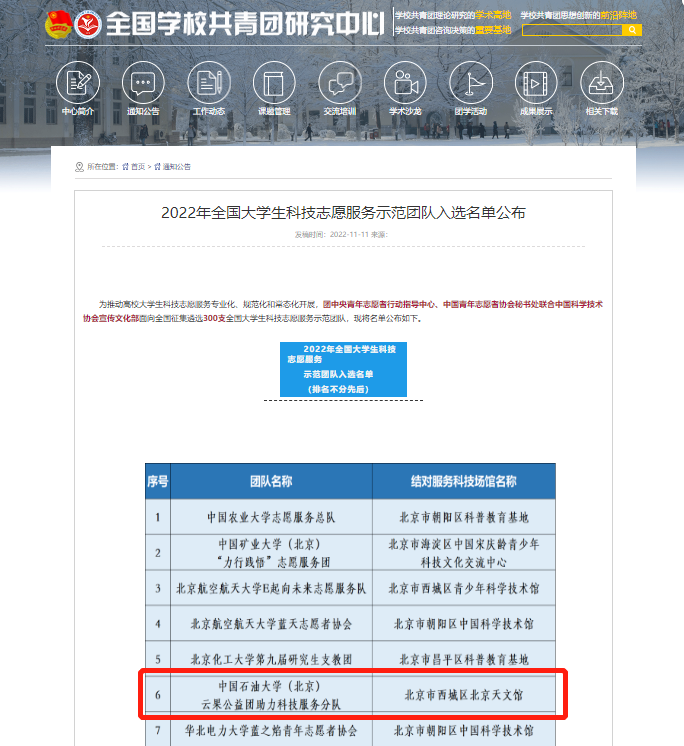 今年暑期中石大云果公益团还参与了首都师生服务乡村振兴行动计划“科技乡村”项目,前往新疆石河子、乌鲁木齐等地开展乡村振兴社会实践,获首都高校师生服务“乡村振兴”行动计划北京市一等奖、首都大中专学生暑期社会实践优秀团队等多项荣誉。
