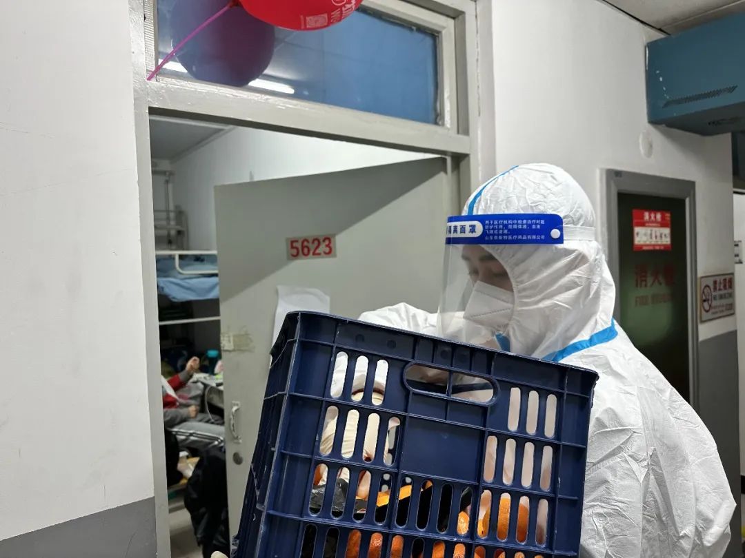 两兄弟穿着大白,和两位志愿者一起配送早饭、组织转运、配送午餐、搬运物资、配送晚餐,直到最后一位同学吃上饭,俩人才顾不得形象,累得一屁股坐下。汗水氤氲模糊了面罩,一天水米未进的胃,阵阵绞痛。