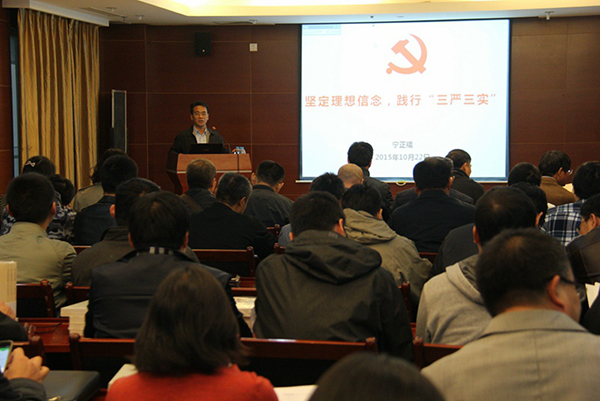 10月22日下午,石大石油工程学院在中油大厦311会议室召开全院教工党员大会,院党委书记宁正福作了题为“坚定理想信念,践行‘三严三实’”的专题党课。院领导、各系教工党支部书记、各系教工党员参加了学习。