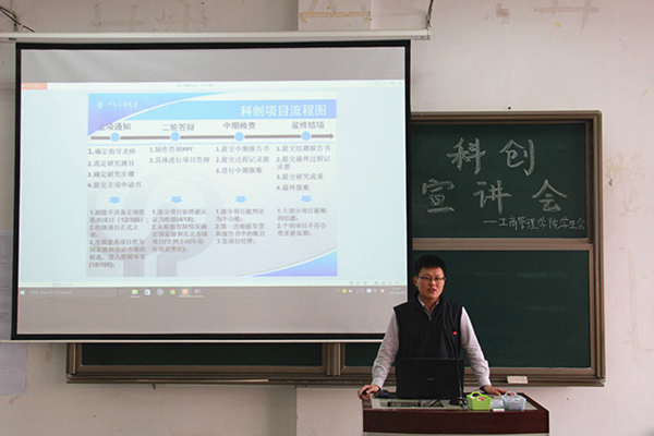 428日下午,石大工商管理学院在地质楼一号阶梯教室举办科技创新宣讲会。学院学生会邀请了王晨阳、赵起凤、连西静三位学长学姐依次分享了各自科创的成功经验与心得体会。