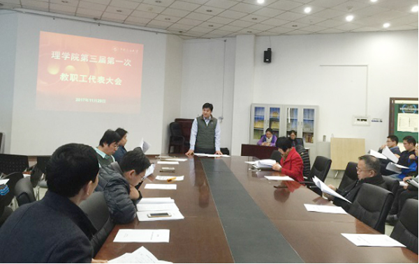 11月29日,石大理学院在理学楼B座召开第三届第一次教职工代表大会,80余名教职工代表参加会议,表决通过了学院《2017年岗位考核办法》。会议由学院工会主席张万松主持。