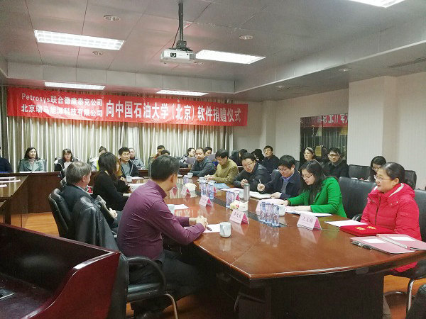 12月14日下午,澳大利亚Petrosys有限公司联合德康泰克公司、北京瑞马能源科技有限公司向石大捐赠软件,软件捐赠仪式在地质楼1105会议室举行。地球科学学院院长曾溅辉、副院长陈冬霞,企业代表以及地球科学学院师生代表参加了仪式。