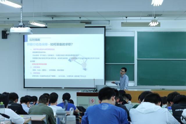 讲座中,朱义清结合真实案例,深入讲解了当前大学生的就业形势政策以及学校就业基本情况,并将学校目前整体就业形势进行了归纳总结;针对学生在就业、创业过程中存在的问题,提出了“观念转变是先导、乐观对待是上策、积极行动是保障”的应对措施。