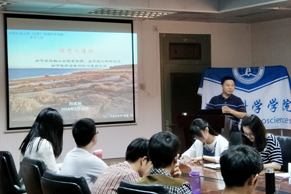 刘成林以“理想与情怀”为切入点,围绕“坚定信念,敢于抉择”“把握规律,一丝不苟”“崇尚情怀,收获辉煌”等方面内容,向同学们讲解了如何尽快融入实验室进入科研状态,如何加强与老师的沟通与交流等系列问题,分析了当今国内外石油能源行业的发展前景,以及近年来石油勘探工业情况,鼓励同学们积极应对行业挑战、开拓自己的视野。