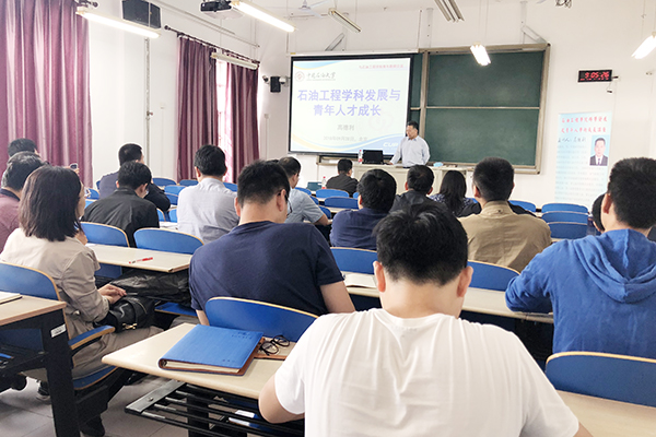 报告会上,高德利院士讲述了石油工程学科发展历程及发展趋势,介绍了复杂油气井工程面临的若干重大问题与目前国内外油气井工程领域的前沿技术,强调油气井工程技术已经向信息化、智能化发展,青年教师应尽早关注并开展研究,注重相关学科的交叉融合,在研究方向上持续深入探索,科研结论要“立得住”,科研成果要做到“一流”。高德利院士还结合自己的学习成长经历和团队培养经验,鼓励青年教师和青年学生要沉下心来做研究、敢想敢干、着力解决日趋复杂化的石油工程技术瓶颈问题,为石油石化行业发展贡献力量。与会师生纷纷表示受益匪浅,既了解了学科前沿,也为自身开展科学研究指明了方向,深受鼓舞。