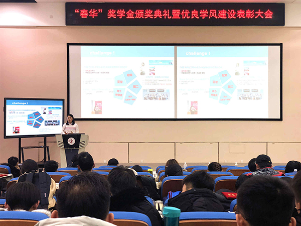 颁奖典礼上,郭海涛宣读了《关于表彰2018年度“春华”奖学金获奖学生的决定》,为获奖学生颁发了“春华菁英”“春华风采”“春华自强”获奖证书,并介绍了“春华”奖学金的由来,勉励同学们努力学习,不断提升自己。沈庆宁回顾了学风建设月的开展情况,宣读了《关于表彰经济管理学院2018-2019学年度秋季学期优良学风班级、宿舍、学习小组和个人的决定》,并为获奖集体、个人颁发了“优良学风班级”“优良学风宿舍”“优良学风学习小组”“优秀学习笔记个人”“模范先进个人”获奖证书。