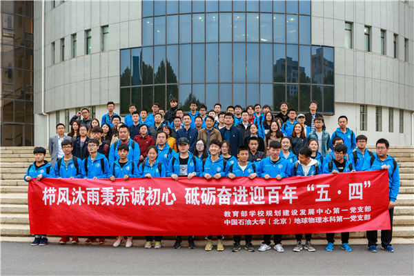 为迎接新中国成立70周年、纪念五四运动100周年,激励和引导广大青年大力弘扬爱国主义精神,传承“爱国、进步、民主、科学”的五四精神,4月28日下午,石大地球物理学院本第一党支部与教育部学校规划建设发展中心第一党支部举办“栉风沐雨秉赤诚初心,砥砺奋进迎百年‘五·四’”联合主题党日活动。教育部学校规划建设发展中心第一党支部全体党员,地球物理学院教授毛志强,学院相关负责人,全体辅导员,青年学生代表参加活动。