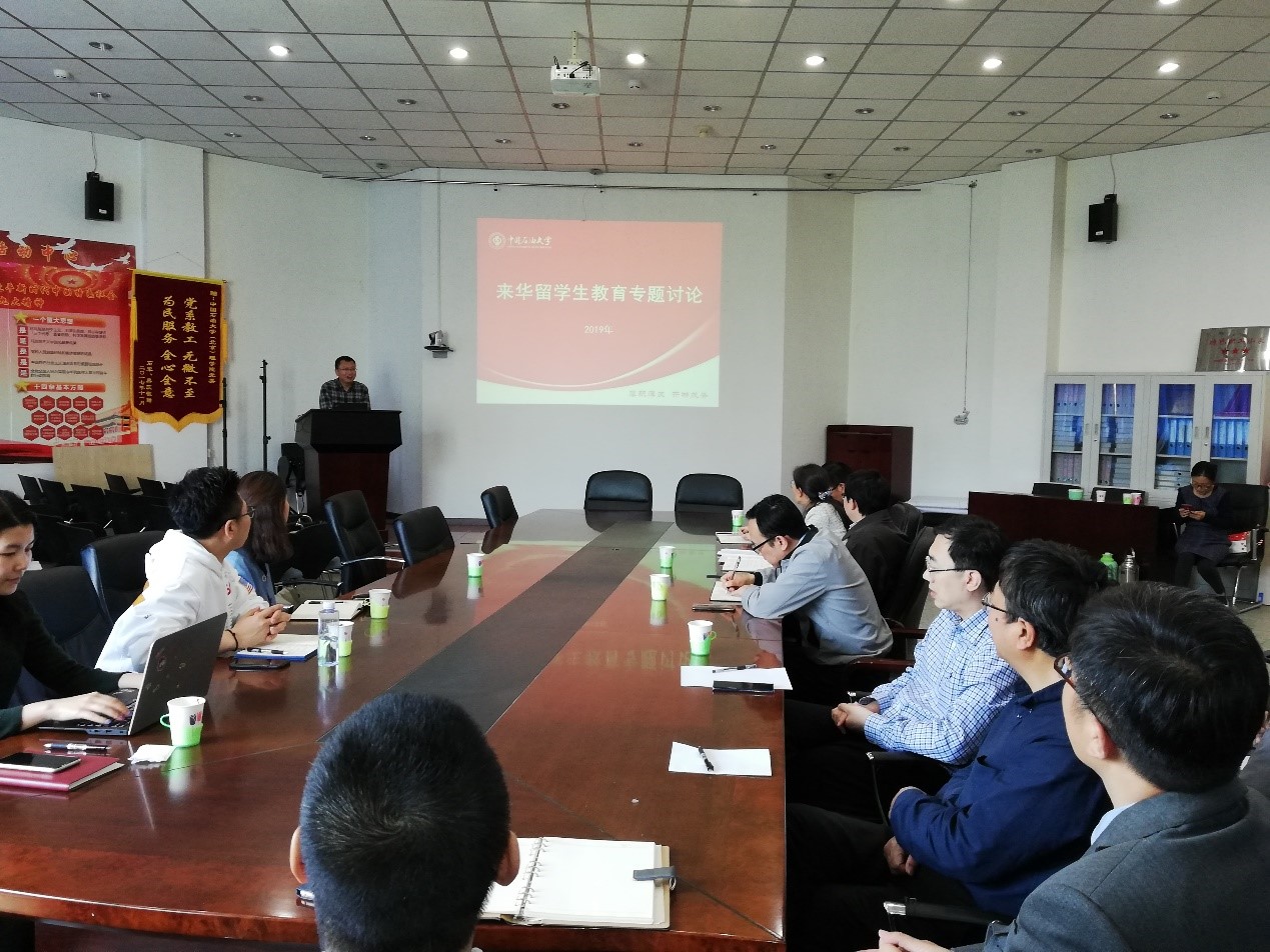 张永学介绍了学校国际化战略的大背景和来华留学生教育发展的历程,当前来华留学生招生和培养面临的困难和机遇,以及学校留学生教育发展的战略定位和目标。他希望学院教师积极参与留学生招生工作,招收优秀留学生生源,为学校留学生教育贡献力量。讲座后,老师们就留学生教育中存在的问题进行了交流。