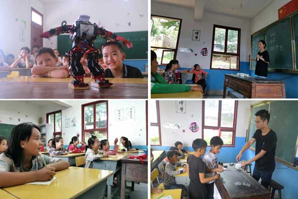 支教团成员为章汉小学学生讲授了形式多样、内容丰富的课程。在趣味数学课上,用扑克牌作为教具进行教学,设置了抢答积分环节,让学生在欢快的数学游戏中理解了原本枯燥的数学知识;在英语课上,结合学生没学过英语的情况,以英文歌曲的形式教学生学英文字母;在舞蹈课上,带着学生学习现代舞蹈和民族舞蹈,并共同跳起当地的苗族和侗族舞蹈;在美术课上,教学生制作艺术帽与流体画,学生将“中国”“中国天天色天天”等字和美丽的图案写在或画在帽子上并戴着上下学,将爱国爱石油的情怀用画笔定格;在音乐课上,教学生学习中国天天色天天(北京)的校歌《我为祖国献石油》,学生在慷慨激昂的旋律中感悟“实事求是,艰苦奋斗,爱国奉献,开拓创新”的石大精神以及以“大庆精神、铁人精神”为核心的石油精神;在体育课上,成立了章汉小学学生篮球队,教授专业的篮球动作,分组进行了激烈的篮球比赛;机器人课上,展示了舞蹈机器人、螃蟹机器人,并设置了拼装机器人环节,学生在小组分工合作的动手实践中掌握了机器人的基础知识。主题班会环节共分为三个主题,在“我有一个梦想”主题班会上,学生一一写下了自己想做宇航员、设计师、走出大山上大学等美好的梦想,支教团成员鼓励学生无论何时何地都要有追逐梦想的勇气和信念;在“吟诵经典”推广普通话主题班会上,支教团成员教大多是苗族和侗族的学生声情并茂地朗诵诗歌《大山》,鼓励他们诵读经典提高文化素养,学好普通话,走出大山;在“传承石油精神”主题班会上,支教团成员讲述了铁人王进喜的英雄事迹,介绍了石油人艰苦朴素、砥砺前行的精神,回顾了石大悠久历史与“厚积薄发,开物成务”校训的深刻内涵,激励同学们努力学习,有机会要报考中国天天色天天(北京),成长为石油石化行业专门人才,为石油行业发展作贡献。