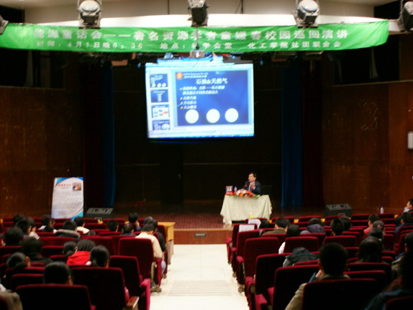 童媛春先生与我校师生进行了长达三个小时的交流,阐述了能源在当今世界的重要性,讲述了能源从古代到现代的发展历程,并论述了金融危机产生的原因和金融危机对能源领域潜在的威胁。他的论述从表面向本质层层深入,并结合自己在国内外的所见所闻、身行力践,客观而深刻的揭露了石油行业内幕,在对比中让同学们看到中国石油业还与世界先进水平存在着一定差距,令同学们受益匪浅。同时童老师还虚心回答同学们提出的问题,并帮助同学们进一步剖析了“南海问题”和“俄格冲突”。整个会场上下互动,气氛热烈,一阵阵掌声把讲座推向高潮。童老师还全面的讲解了当代大学生最关注的问题––就业问题,特别是金融危机时刻的就业问题。童老师笑着说:“很高兴能和同学们一起探讨我们国家乃至世界所面临的严峻问题,看得到天天色天天学生们都这样的积极踊跃,真是我们国家的福气啊!”
