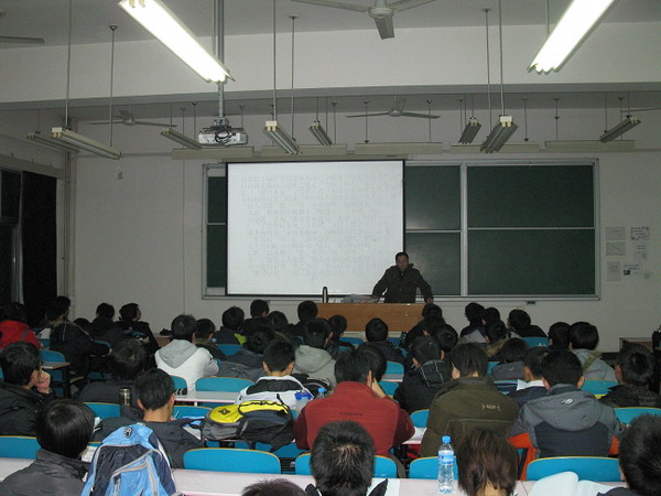林嵩老师首先从婚姻形态的变化讲起,通过对我国少数民族的流传下来的古老传说的分析,着重讲述了从原始社会的“乱婚”的形态怎样一步步地演变到现代文明的婚姻形式,并在最后通过对《红楼梦》中人物关系的解析来说明古代婚姻等级制度的森严分明。林老师在报告的过程中旁征博引,引用了大量的古籍文献,论证明晰而有力,幽默诙谐的语言不时引起同学们的阵阵掌声。