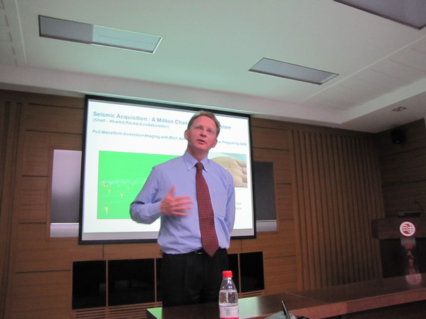访问期间,Smit博士为学校师生作了题为“Fuelling the Future: Energy Challenges Driving New Geoscience”的报告,受到热烈欢迎。报告会后,肖立志教授,长江学者、973首席科学家王尚旭教授,测井专家陶果教授等陪同客人参观了油气资源与探测国家重点实验室物探与测井领域的部分设施,引起了客人的浓厚兴趣。