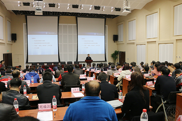 党委书记蒋庆哲代表学校党委领导班子总结了2015年学校党委重点工作,并对2015年学校干部选拔任用工作进行了专门汇报。一是认真履行管党治党的政治责任。积极配合接受教育部对学校的专项巡视工作,全面落实各项巡视整改任务。扎实推进,圆满完成“三严三实”专题教育活动。持续用力,认真落实八项规定精神。二是不断加强党对学校事业改革发展的领导。研究出台了《关于全面深化教育教学综合改革的若干意见》、《关于全面提高本科教学质量的意见》、《关于深化研究生教育综合改革的意见》等重要改革文件。三是抓大事谋全局,为学校事业发展提供坚实保障。大力加强干部队伍和人才队伍建设,干部结构进一步优化,干部队伍建设长效机制得以不断完善。经过多年努力,学校办学空间和硬件条件得到不断改善。财务运行收支平衡,“开源节流”效果显著。四是坚持正确舆论导向,努力营造干事创业的和谐稳定氛围。大力加强宣传思想政治工作,用社会主义核心价值观汇聚正能量,营造好氛围。坚持从严管理干部,抓住这个“关键少数”,增强干部自律意识,进一步密切干群关系。守住底线,管疏结合,为教师干部干事创业营造宽松环境。