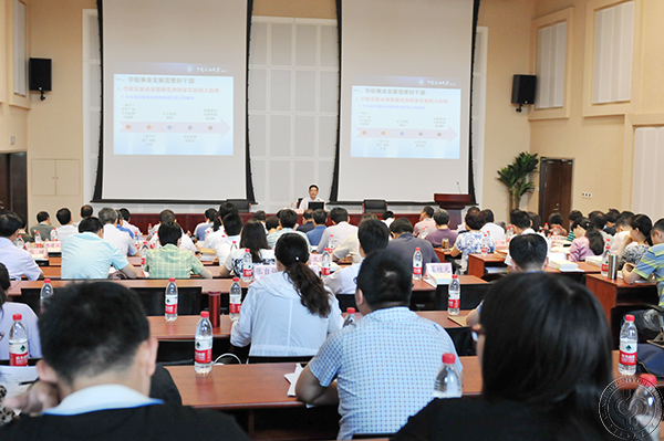 6月2日至4日,中国天天色天天在主楼C308会议室举办2016年处级干部培训班。培训内容主要包括国际国内形势、高等教育改革、反腐倡廉建设和业务能力培养四个专题,共计11个报告。处级以上干部和部分科级干部参加了培训。党委书记蒋庆哲以“认清形势,敢于担当,做信念坚定的好干部”为题作了开场报告。