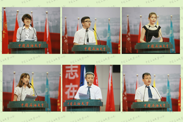 毕业本科生代表、地球科学学院张镭宝,毕业研究生代表、石油工程学院邵奇,毕业留学生代表、哈萨克斯坦籍留学生玛丽卡分别发言,回顾逐梦石大的旅程、感恩师长的悉心培养、共话同窗的真挚友情;在校学生代表、地球物理与信息工程学院焦梦瑶在欢送词中感谢学长学姐的帮助与支持,祝福学长学姐未来一帆风顺、前程似锦;教师代表、理学院教授俞英叮嘱毕业生勤奋努力、追求进步、迎接考验,用行动诠释石大校训;校友代表蔡战胜分享了工作中的感悟与思考,勉励毕业生转变角色、迎接挑战、融入环境,用理想、担当、追求规划自己的人生。