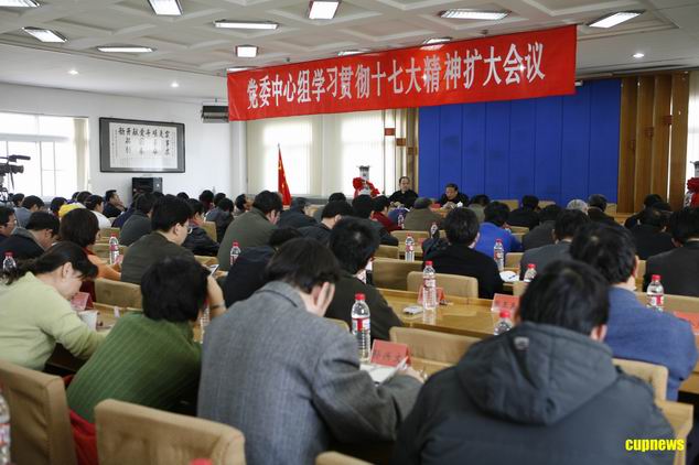 12月14日下午,校党委在第四会议室召开党委中心组学习贯彻十七大精神扩大会议,中央纪委副部级巡视专员戴俭明作十七大辅导报告,全体校领导和全体二级党员干部参加了会议。会议由校党委书记蒋庆哲主持。