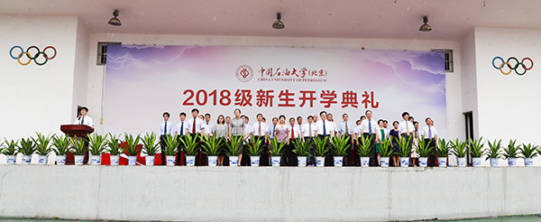 伴随着庄严的国歌声与冉冉升起的五星红旗,开学典礼正式开始。校长张来斌发表讲话,对石大新同学寄予殷殷希望。他代表学校欢迎石大基因的新传承人、代表新希望与新活力的石大新主人——2018级新同学如约而至,与石大一起共迎风雨,同赏晴空,希望他们接受石大精神的洗礼和文化的熏陶,在石大校园度过一段无悔的青春时光。