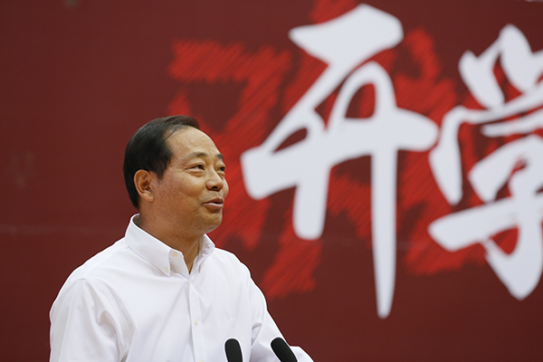 王刚代表克拉玛依市委、市政府向全体新生表示欢迎,向奋战在一线的校区教职员工致以教师节的问候,强调克拉玛依是一座为梦想“加油”的城市,希望同学们在第二故乡克拉玛依练就本领、锤炼品格、展现才华、放飞梦想,勇敢地担负起青年一代的责任和使命,成为新时代中国特色社会主义建设者,成为实现中华民族伟大复兴中国梦的生力军。
