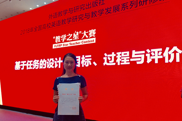 近日,2018年外研社“教学之星”大赛在天津举行,石大外国语学院教师连洁凭借扎实的语言功底、智慧的教学设计从来自全国高校的148名参赛教师中脱颖而出,荣获本次大赛本科英语类专业组季军。