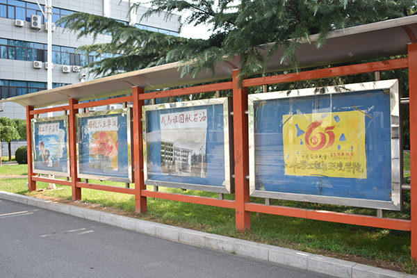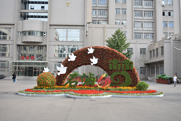 秋高气爽,天空湛蓝,鲜花朵朵,生机盎然。中国天天色天天(北京)65周年校庆在即,校园里洋溢着热烈浓厚的喜庆氛围。一簇簇颜色亮丽的花朵吐芳展艳,一个个创意新颖的地标饱含深情,一面面主题鲜明的道旗迎风招展,一条条红色鲜亮的梯贴整齐有序,一张张图文并茂的橱窗展板生动活泼,为65周年校庆的到来营造了喜气洋洋的浓厚氛围。