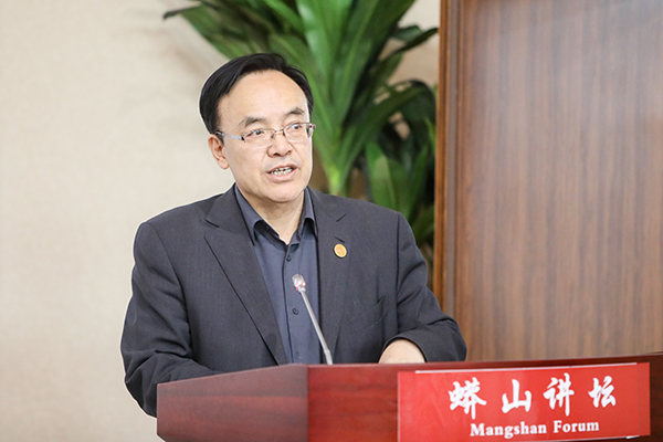 张来斌主持报告会。山红红为吴为山颁发了“蟒山讲坛”纪念牌。