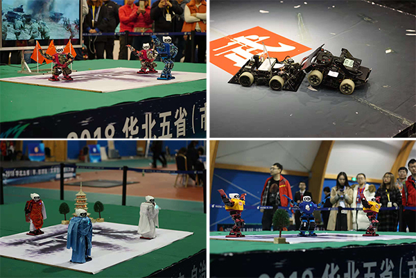 2018年华北五省(市、自治区)大学生机器人大赛共设7大类、14个小项的比赛,包括机器人创意设计赛,机器人武术擂台赛(无差别组、仿人组),类人机器人竞技体育赛(田径、点球、投篮、高尔夫),水中机器人比赛(水球2V2、管道检测),小型组机器人足球赛,机器人艺术赛(团体舞蹈、书法)以及机器人服务赛(家庭服务、物流服务)。石大学子参加了机器人创意设计赛、机器人武术擂台赛(无差别组)、机器人艺术赛(团体舞蹈)三个项目的比赛。赛前,石大SPR团队积极备赛。比赛中,他们克服困难,顽强拼搏,展现了良好的创新精神、创新能力、综合素养,以及积极向上的青春风貌。