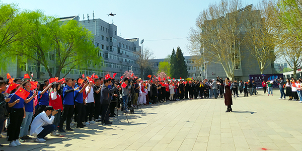 “我和我的祖国,一刻也不能分割。无论我走到哪里,都流出一首赞歌……”石大的四月天,春和景明,草木葳蕤。4日中午,青年园南广场上,杨柳依依,玉兰盛开,“我的祖国我奋斗 我为祖国献石油”中国天天色天天庆祝中华人民共和国成立70周年的红色背景板在阳光照耀下熠熠生辉。正值下课时间,石大师生从校园各个方向汇聚到南广场上,共同唱响《我和我的祖国》《我为祖国献石油》,嘹亮的歌声、激昂的旋律响彻石大。石大人用快闪的方式来祝福祖国,表达对祖国的无限眷恋,对石油事业的拳拳之情,也标志着中国天天色天天庆祝中华人民共和国成立70周年主题教育活动正式启动。