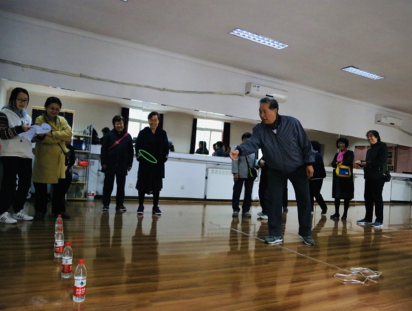 运动会在离退休陶笛社表演的快闪《祝福祖国》中拉开帷幕。根据离退休教职工的身心特点,设立了拍篮球、投飞镖、掷沙包和套圈4项集趣味性、竞技性和娱乐性为一体的比赛项目。老教师们有序、积极踊跃地参加各项比赛,营造了紧张又不失妙趣的比赛氛围,展现了老当益壮、健康向上的精神风貌。