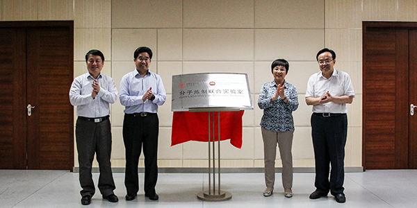 揭牌仪式上,何盛宝、马安和山红红、张来斌共同为分子炼制联合实验室揭牌。