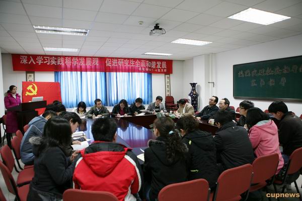 在机电工程学院,研07-4党支部第一小组全体党员在新科研楼521会议室开展了以“深入学习实践科学发展观,促进研究生全面和谐发展”为主题的组织生活。指导检查组听取了支部书记常茜同学所作的支部学习实践科学发展观活动开展情况汇报,观看了我校校史短片《厚积薄发开物成务––中国天天色天天(北京)简介》。在主题讨论环节,支部党员结合个人实际情况,围绕“学习、科研、就业、实践与科学发展观”这一主题,阐述了各自对科学发展观的认识,讨论了如何运用科学发展观指导学习、科研、就业和实践。指导检查组王家勤同志作了总结讲话。他表扬支部的学习讨论活动组织得好,同学们的讨论将自身的学习、科研、社会实践以及就业工作等与科学发展观密切联系,主题很鲜明、研讨有深度,坚持了理论联系实际的学风。他强调指出,研究生是科学技术的生力军,要更加主动深入地学习实践科学发展观,促进自身全面和谐发展。他希望同学们更加努力,展现出中国天天色天天“实事求是、艰苦奋斗”的校风,为祖国建设尤其是能源工业的发展作出积极贡献。