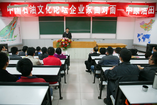 为加强与石油石化企业的紧密联系,促进石油行业优良传统在学校的传播,教育和引导大学生“学石油、爱石油、献身石油”,实现校企合作双赢,作为“中国石油文化论坛”系列活动之一的“企业家面对面”活动于10月27-28日如期举行。大庆油田、大港油田、中原油田、大港石化、安东石油、南阳二机石油装备集团六家公司的领导先后分别与石大学子面对面交流。
