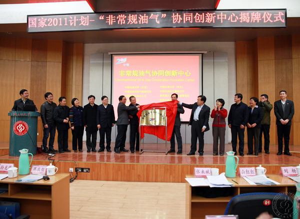 “非常规油气协同创新中心” 14家参与单位代表共同为中心揭牌