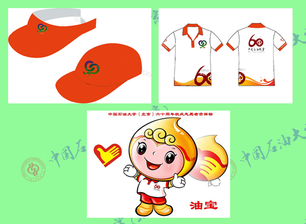 校庆志愿者吉祥物——“油宝”。作者是徐庆丰。以“石油”、“志愿者”和“六十周年校庆”等为元素构成了中国天天色天天六十周年校庆志愿者的吉祥物,具有浓郁的中国天天色天天特色和象征意义。