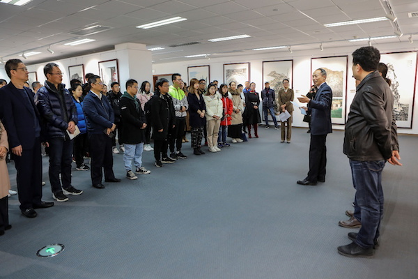 开幕式上,鲍志东代表学校向主办方及各位嘉宾表示欢迎与感谢,并介绍了学校的基本情况。他指出,近年来,学校不断加强和改进美育工作,注重以文化人、以美育人,围绕“文明石大、厚重石大、活力石大、美丽石大”的目标,积极为学生成长发展创造良好的校园文化环境,期待以此次画展为良好的开端,在文化建设方面与社会各界进行更宽领域、更多形式、更深层次的合作,让优秀的艺术作品、艺术家,走进石大、走近师生;希望同学们能够从优秀的文化艺术作品中汲取营养、涵养品格、活跃思维、开阔视野。