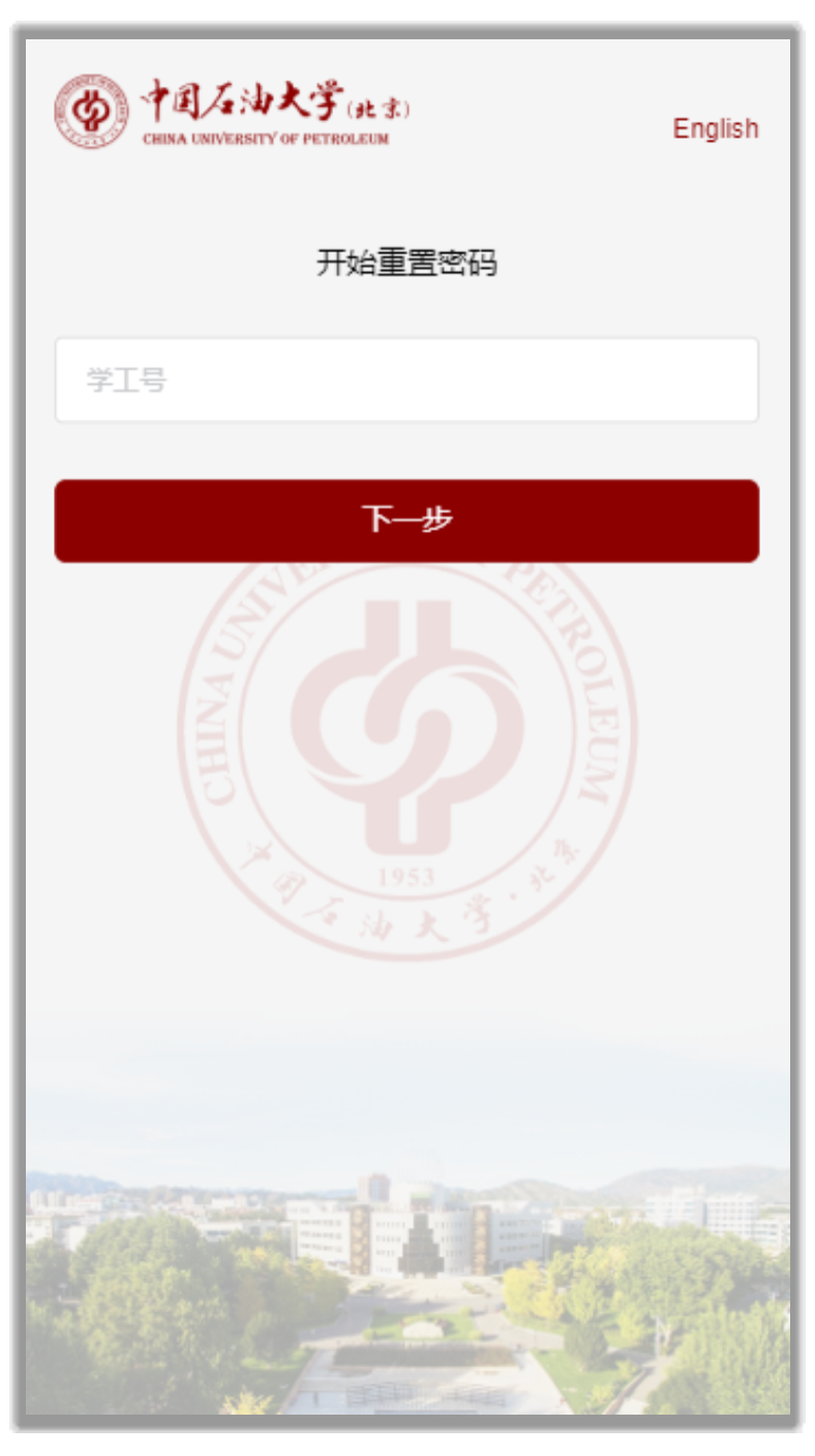 输入图形验证码并点击“获取验证码”,若图形验证码无误则系统会将短信验证码发送至您预留在系统的手机号,输入后点击下一步,若验证无误则进入重置密码页面;