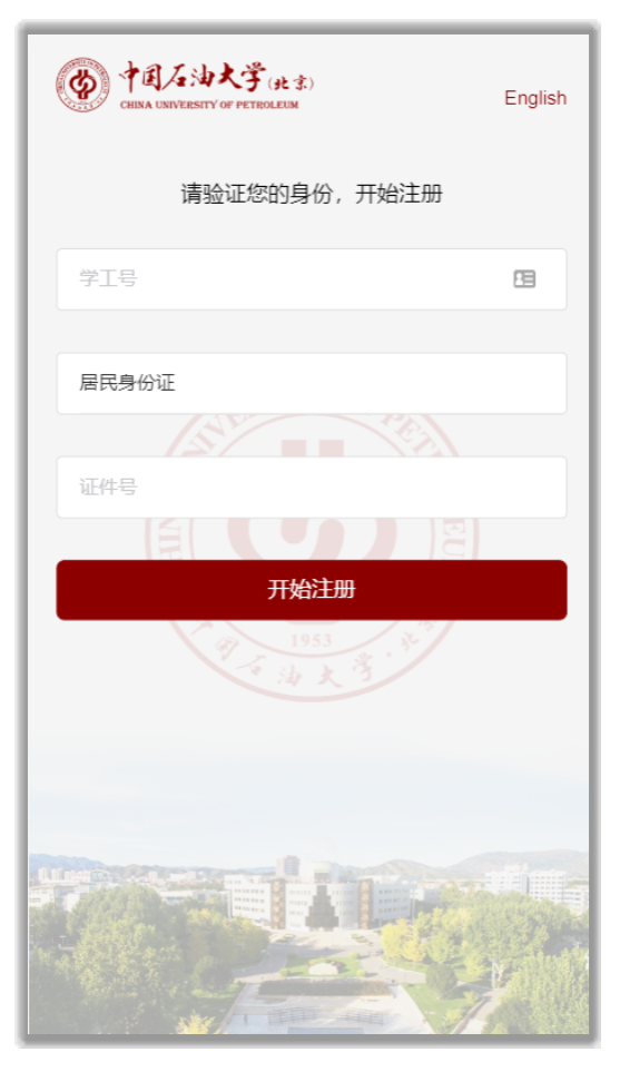 2、根据页面提示填写“学工号”,选择对应“证件类型”并填写证件号码,点击下一步,若验证未通过请仔细检查填写信息是否有误,若验证通过则进入二维码扫码页面。