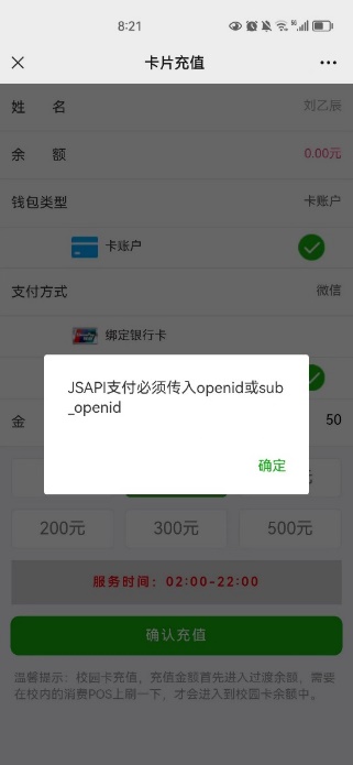 3.微信企业号中使用微信支付充值时间为周一到周日早6:00-晚23:00,使用绑定银行卡支付充值时间为周一到周日7:00-20:00。