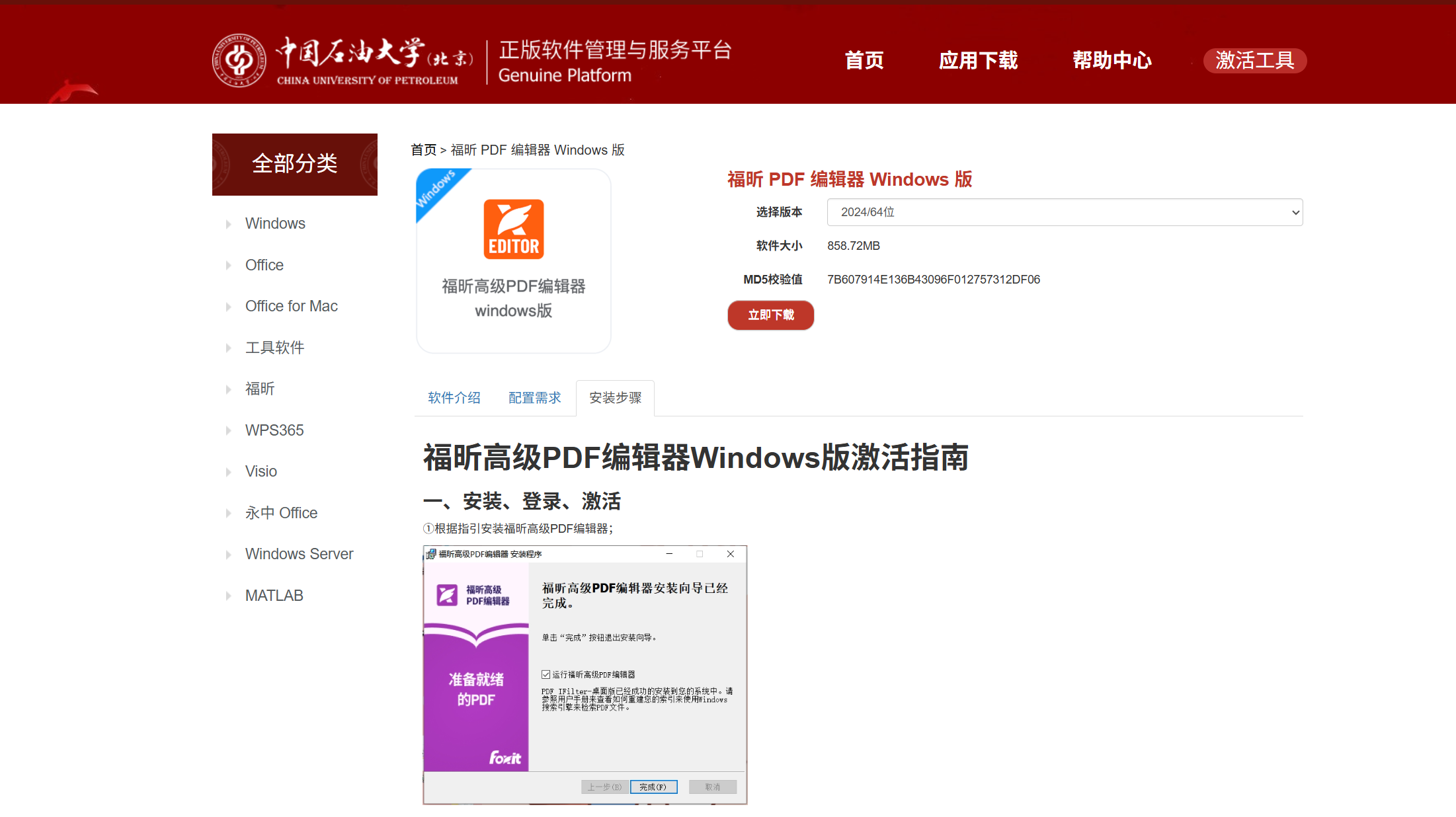 (3)福昕PDF激活请参照正版化平台福昕PDF安装步骤来安装激活。