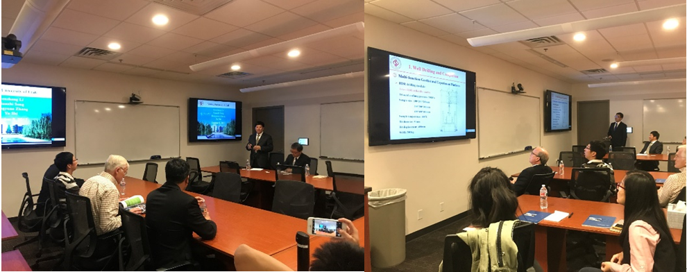 6日,李根生院士一行受邀访问了美国犹他大学,分别与犹他大学副校长Prof. Andrew S. Weyrich、工程学院院长Prof. Richard B. Brown、能源与地质研究院院长Prof. Raymond A. Levey、化学工程系主任Prof. Milind D. Deo等进行了深入交流,充分了解了犹他大学的办学情况和科研工作,李根生院士详细介绍了我校的院系组成、师资力量、国际合作及科学研究的相关情况,宋先知副教授受邀做了题为:“Research and Application of Water Jet Technology in Drilling and Completion”和“Research Progress in Geothermal Well Drilling, Completion and Production”的学术报告。访问期间,双方就人才培养、科技合作、学术交流与联合实验室等进行了探讨并达成了合作意向。最后,李根生院士探望了在犹他大学访问学习的石大师生,了解了他们的学习、科研和生活情况,鼓励大家努力工作,取得丰硕的科研成果。