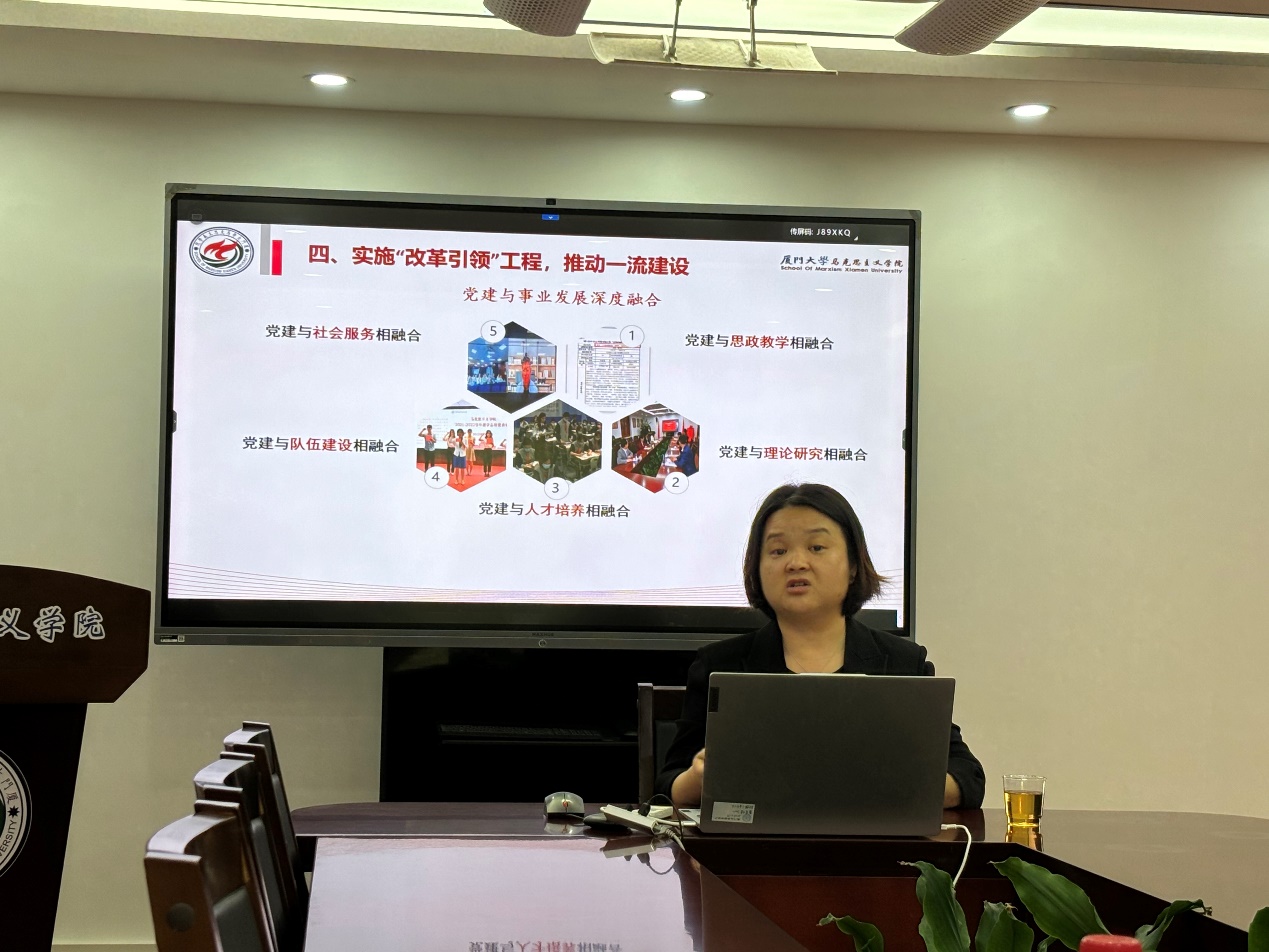 为进一步提高我院党建工作质量和推进“全国高校党建标杆院系”培育创建工作,学习兄弟院校党建工作中的先进经验做法。4月18日,学院党委副书记刘东东率队至厦门大学马克思主义学院调研交流党建标杆院系建设工作经验,厦门大学马克思主义学院党委书记石红梅等接待参会。