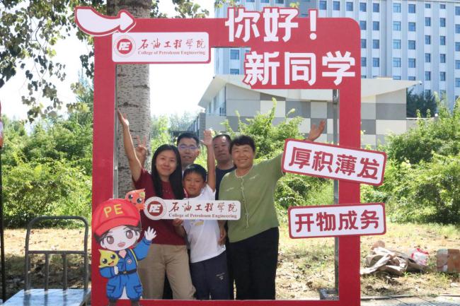 迎新现场设有签名墙、打卡点等互动区域,新生与家长纷纷驻足合影,记录下踏入石工学院的“第一刻”。