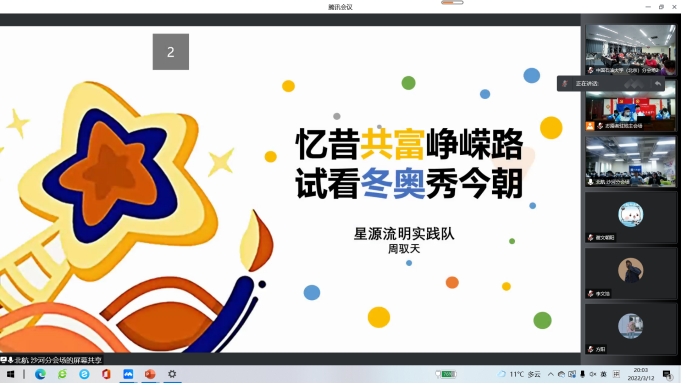 活动共分为“冬奥·点滴”“冬奥·传承”“冬奥·百年”“冬奥·寄语”四个环节,来自石油工程学院和守锷书院的8位同学围绕活动主题,结合自身经历,分别从不同角度展开分享。