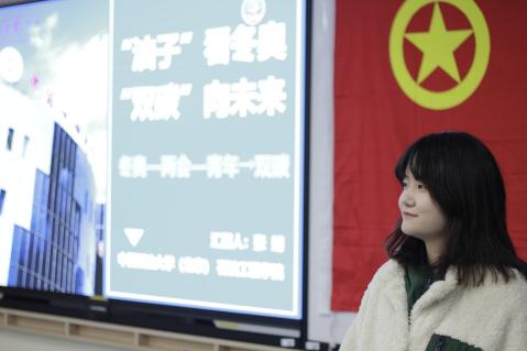 在“冬奥·点滴”环节,石油工程学院和守锷书院的4名冬奥会志愿者分享了服务保障冬奥会的点滴故事以及亲身感受。石工20-1团支部的李文浩同学以“践行铁人担当,共筑大国自信”为主题,分享了石工学子在服务保障冬奥会中大力践行中石大精神和铁人精神的经历,彰显了直面挑战、勇于担当的铁人作风。