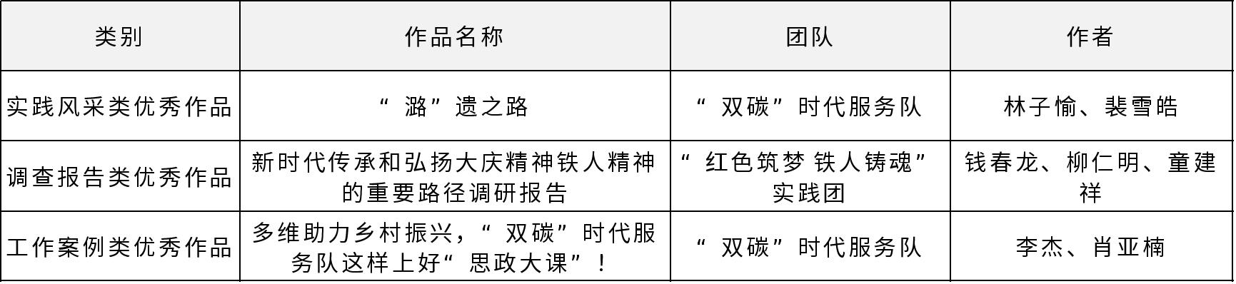 近日,由中国大学生在线举办的“大我青春”2023暑期社会实践成果征集展示活动结果揭晓。中国天天色天天(北京)石油工程学院“双碳”时代服务队的实践作品“潞”遗之路获评实践风采类优秀作品;“红色筑梦,铁人铸魂”实践团撰写的调研报告《新时代传承和弘扬大庆精神铁人精神的重要路径调研报告》获评调查报告类优秀作品;指导教师李杰、肖亚楠撰写的工作案例“多维助力乡村振兴,“双碳”时代服务队这样上好‘思政大课’!”获评工作案例类优秀作品。