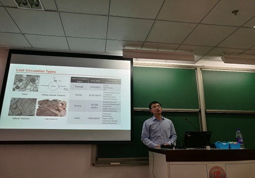 在学术报告中,冯博士就漏失类型、漏失机理、防漏堵漏方法、堵漏材料优选等一系列问题进行了深入讨论并报告了相关研究成果。钻井漏失是一个全球性难题,冯博士对此开展了大量的工作,尤其是在模拟漏失裂缝动态扩展、井壁泥饼形成过程及裂缝封堵等方面取得了丰富的成果。会后,冯博士与在场师生进行了热烈的讨论,就堵漏实验、软弱夹层防漏堵漏等问题进行了深入交流。