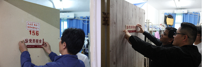 随后,黄世军、刘东东及教师党员代表为党员宿舍挂牌。