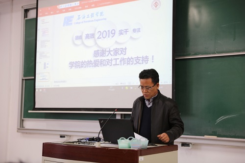 其次,张广清院长对2019年度的工作进行了部署,学将重点做好聘期考核及聘任、本科教学质量、专业认证复审、国际认证、本博一体化、一流学科建设、人才团队与梯队、行业重点需求结合、实验室安全与资源优化等方面的工作。为保障2019年重点工作的顺利开展,张广清院长着重强调了安全稳定工作部署、专业认证复审任务节点及要求、本博一体化化培养方案制定与实施进度安排、科研工作部署、加强科研实验室安全管理规定及学校实验室资源优化的相关政策传达、学生请假流程等具体规定。