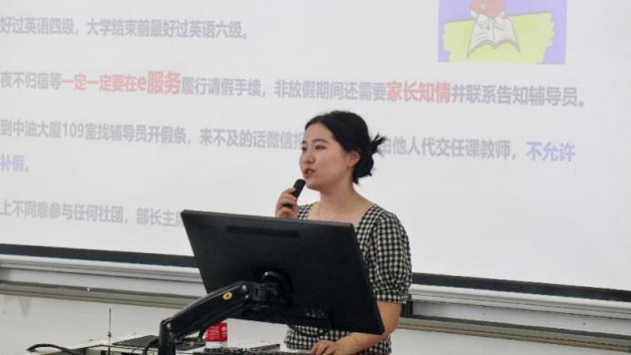在本科入学教育第一讲中,石油工程学院党委副书记刘东东侧重于日常教育与管理方面,就学院基本概况、新修订的综合测评办法、违纪处理、生涯规划、文明礼貌以及宗教信仰等方面进行耐心细致的讲解。他叮嘱同学们尽快做好大学四年的规划,适应身份的转变,在保证学习成绩的同时注重全面发展,做能担重任、可堪大用的社会主义建设者和接班人。