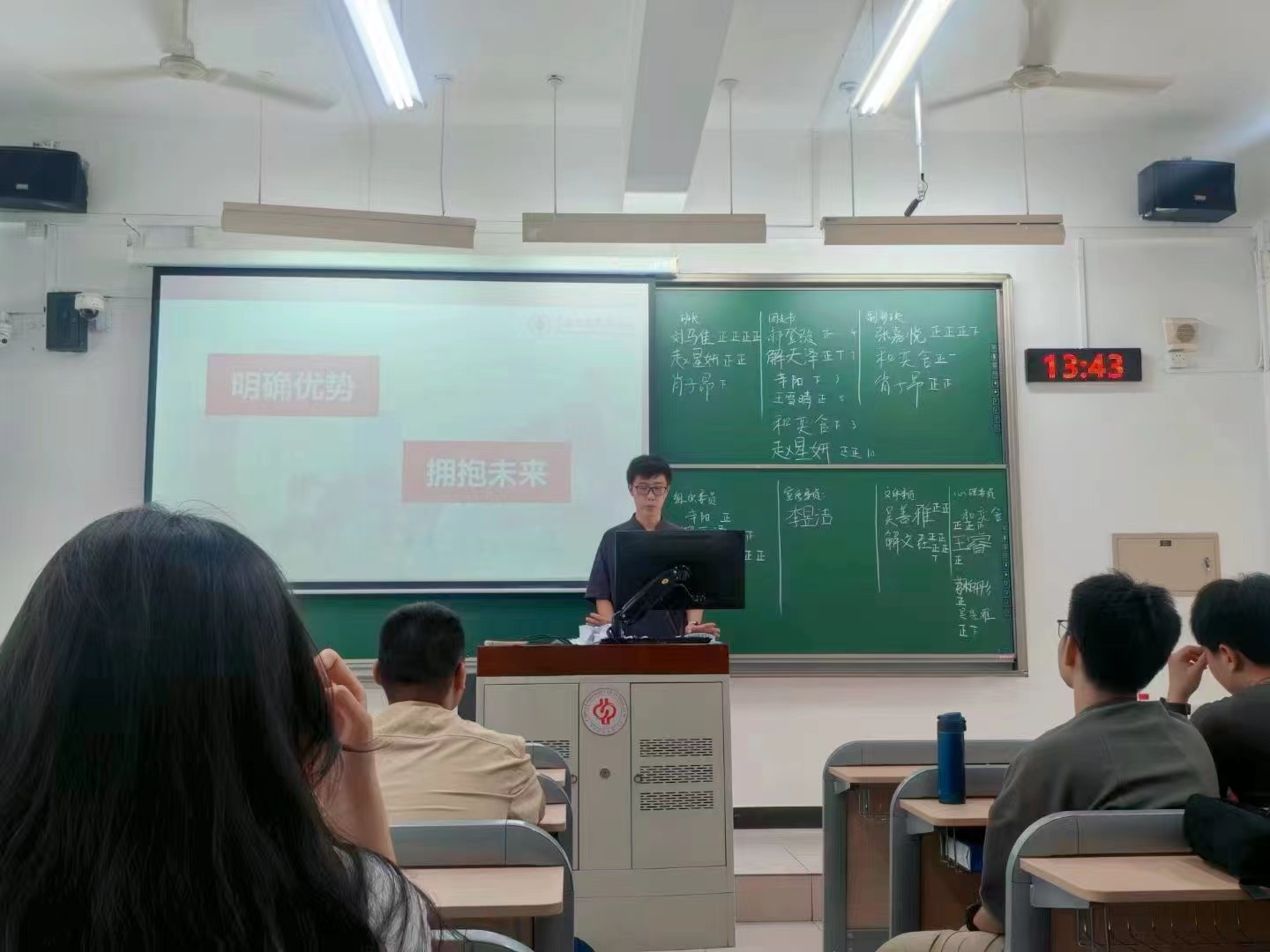 在本科入学教育第五讲中,班主任、领航员以班级见面会的形式与同学们亲切交流。班主任结合自身经历和教学经验对学生本科四年的学习任务进行梳理与指导;各班领航员从学习、社团工作等方面向同学们介绍大学期间的生活,同时鼓励大家发展自己的兴趣,并以此打开社交圈、打破信息差,更好的在大学中进步与成长。