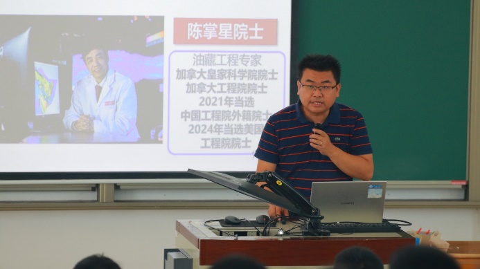 在本科入学教育第三讲中,石油工程学院石油工程专业负责人李俊键从专业简介、培养目标、课程体系、师资队伍、培养及就业、专业特色等方面进行专业介绍,并勉励新生要以中石大为荣、以所学专业为荣,以能源报国为己任,积极投身于国家能源行业。